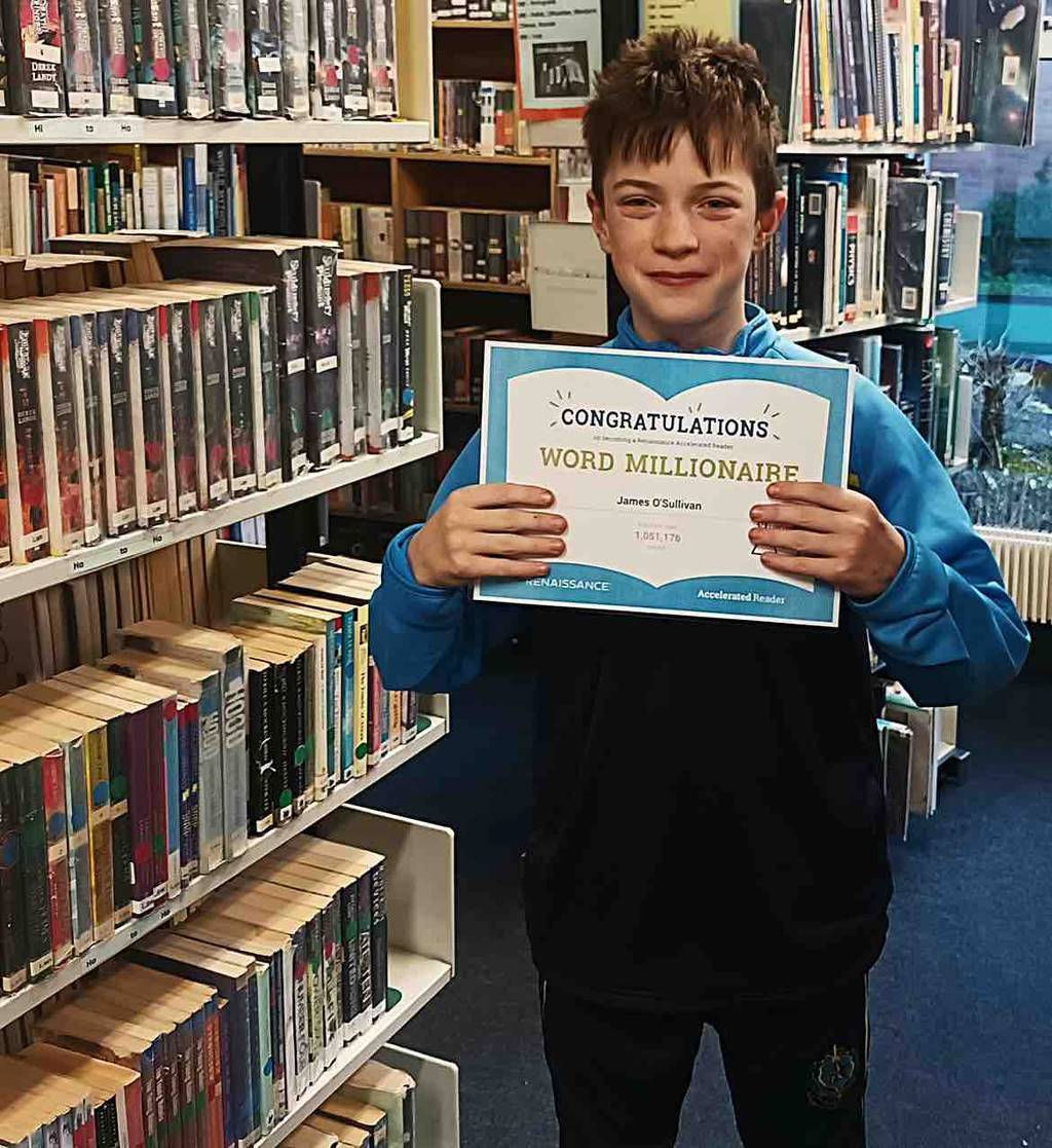 Congratulations to James O’Sullivan on becoming an Accelerated Reader Word Millionaire. Well done James!