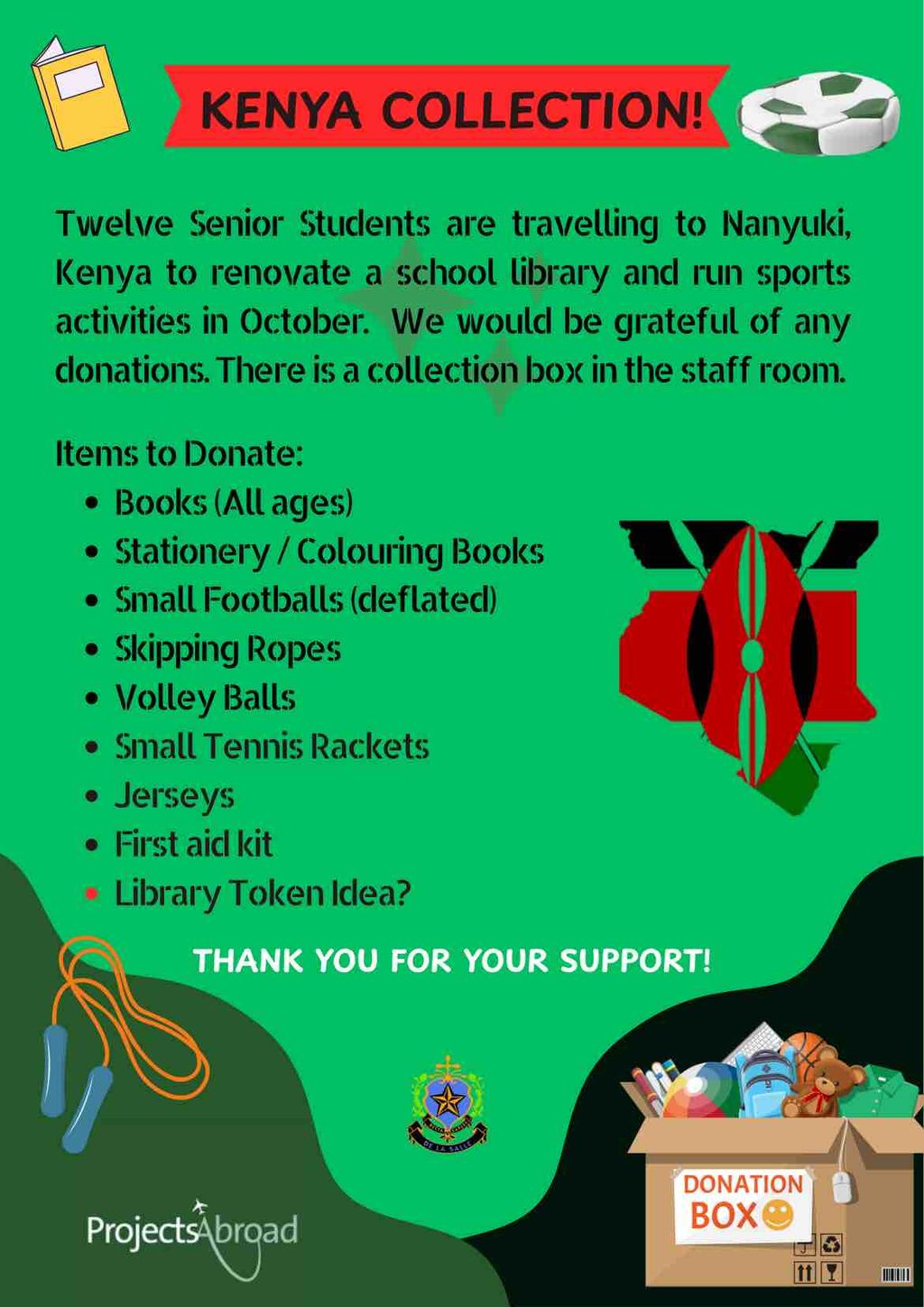 Twelve senior students and two teachers are travelling to Nanyuki, Kenya during the midterm break (October 25th – November 2nd). They are undertaking a vital community project to renovate the library at Ndururi Primary School and are running enriching sports activities for the children at the local stadium.