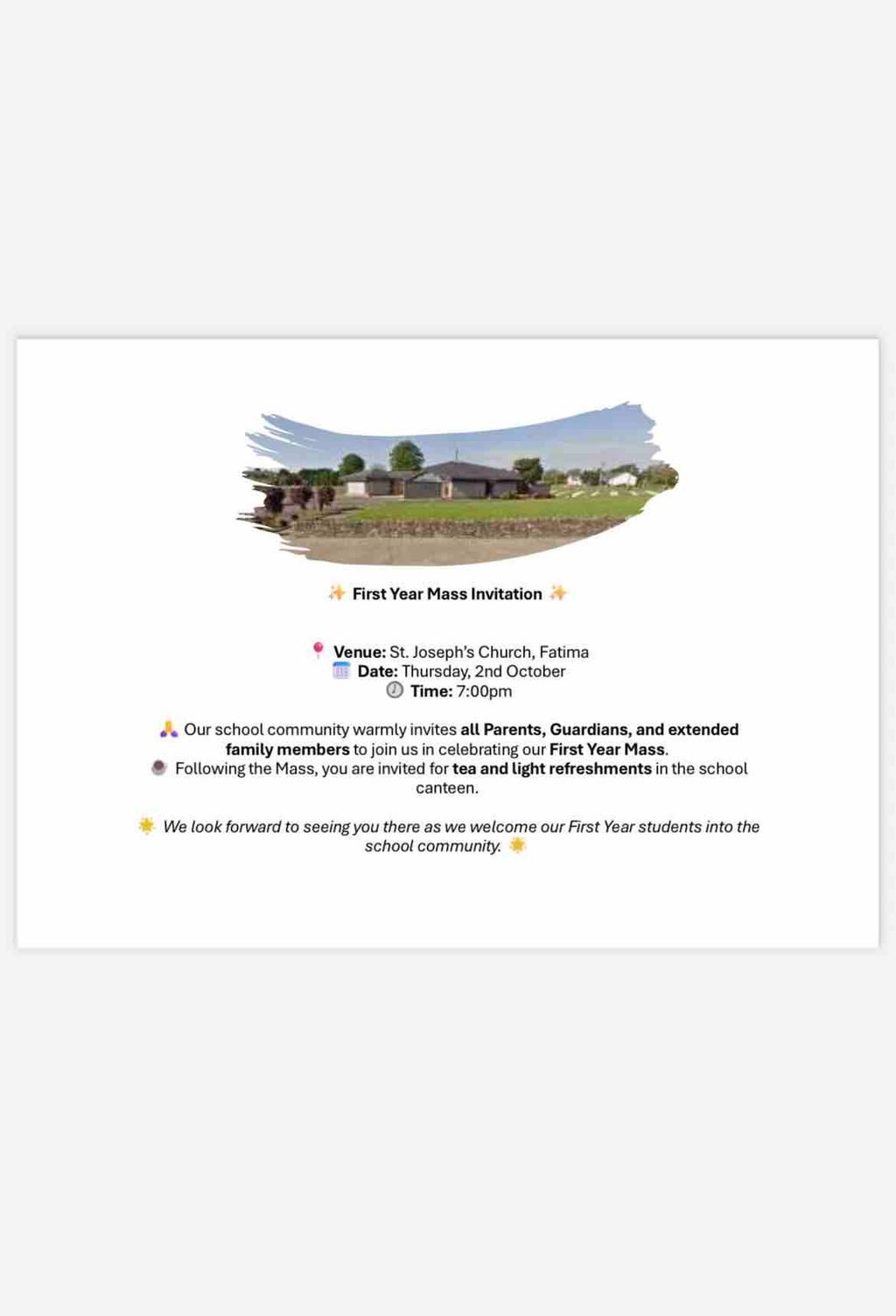 First Year Mass Invitation