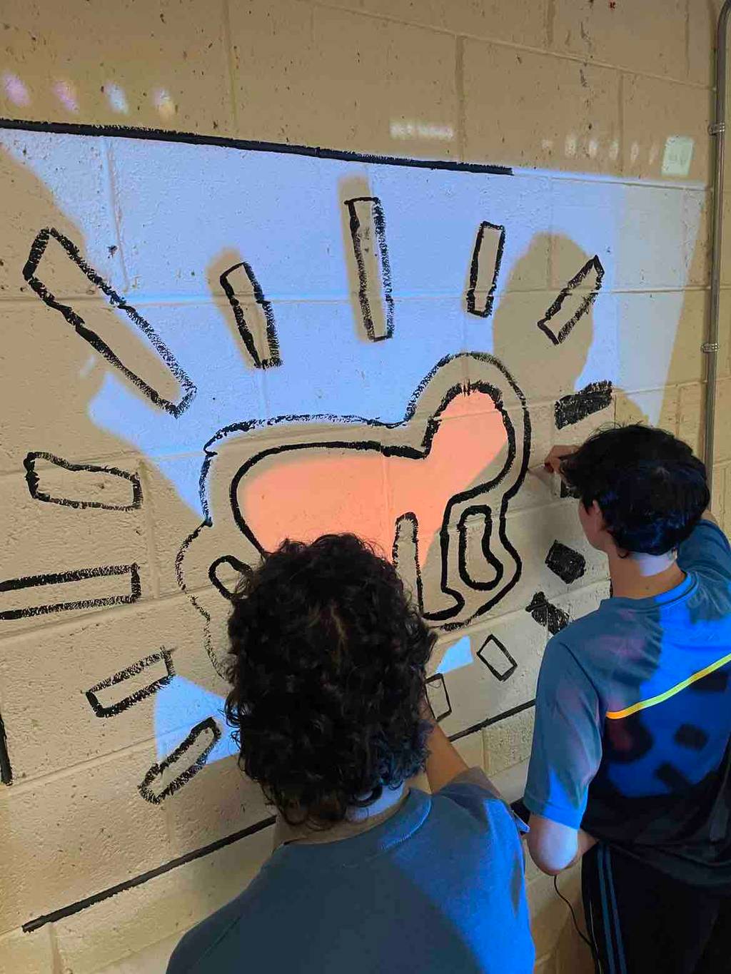 Transition Year students, in collaboration with LCA students, gave the Art Room a vibrant facelift inspired by the imagery and style of artists Jean-Michel Basquiat and Keith Haring.