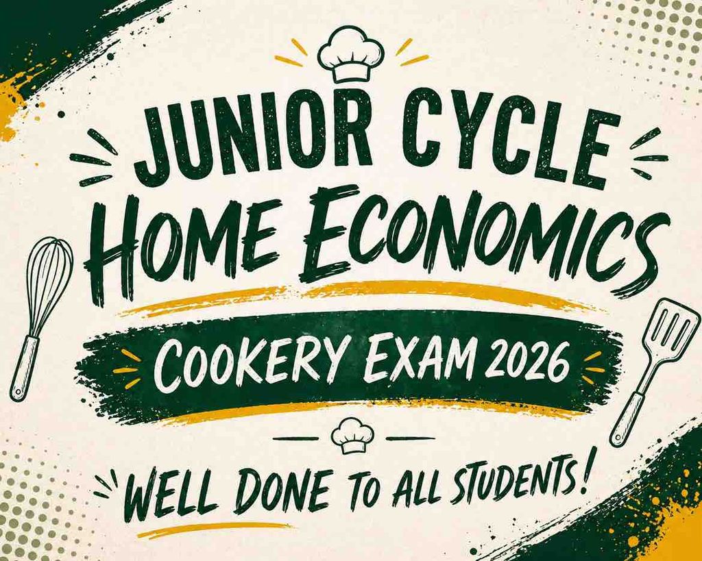 Congratulations to all of our Junior Cycle Home Economics students who completed their cookery exam last week.