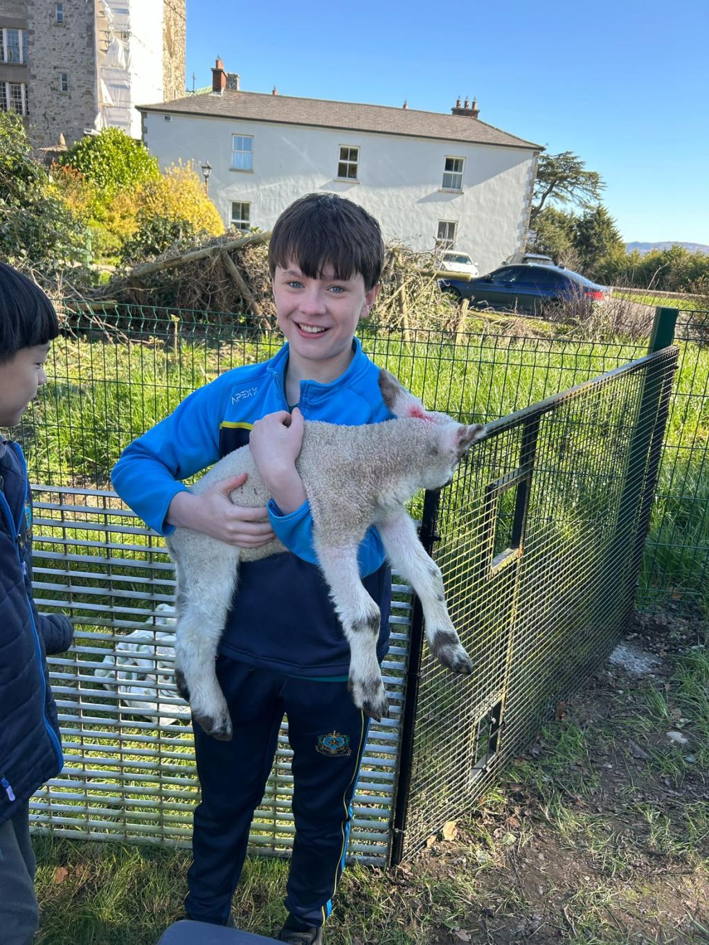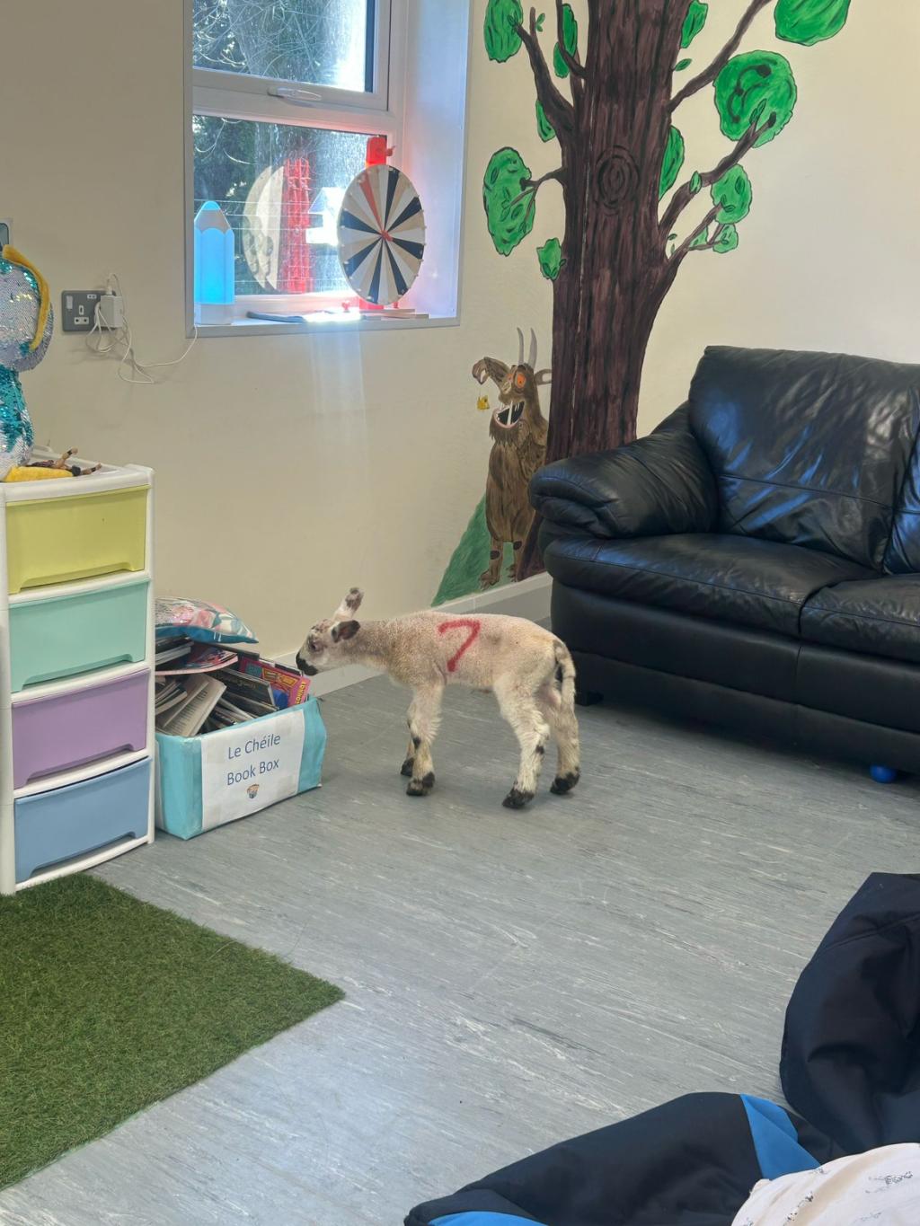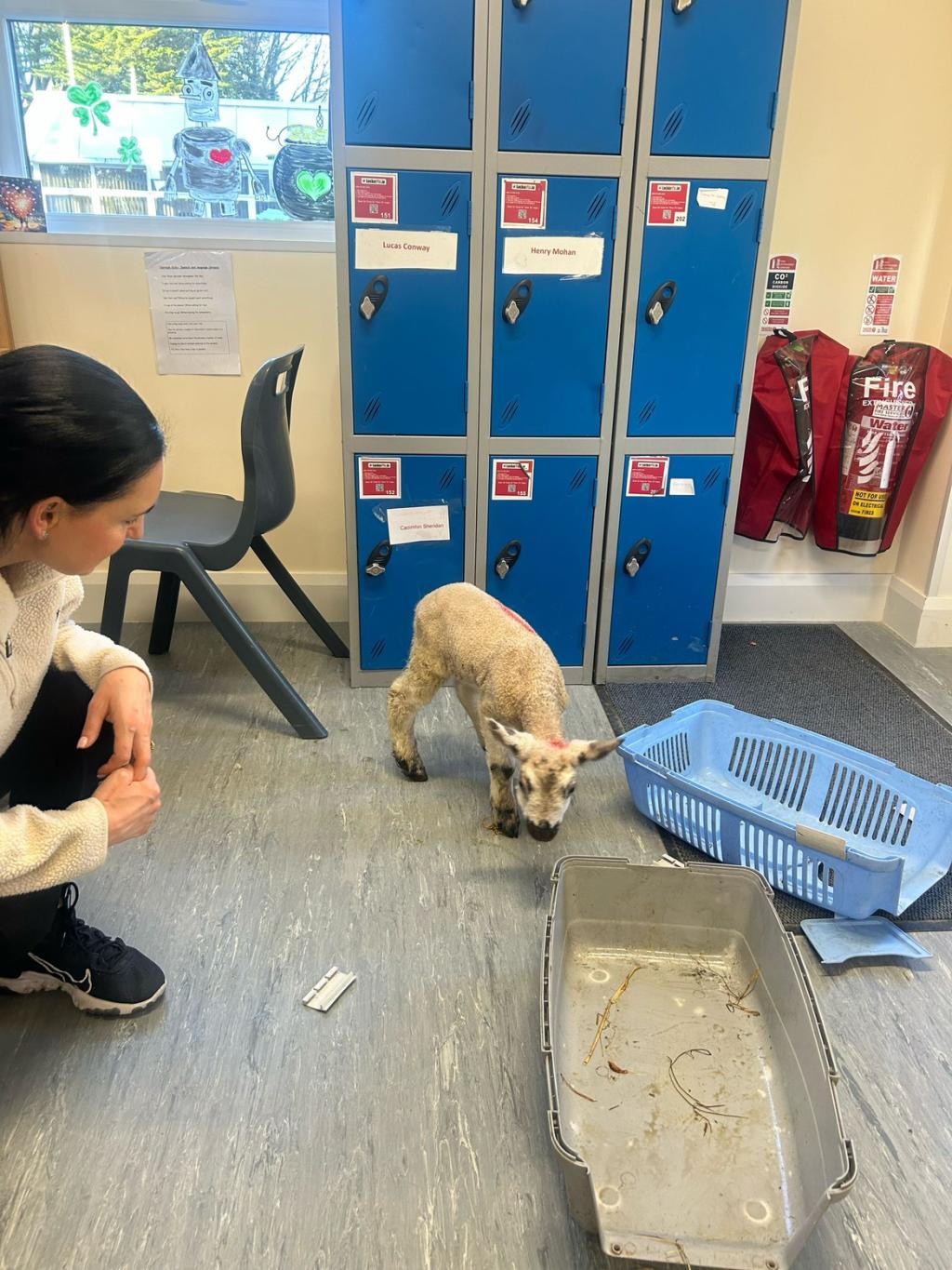 Thank you to Mr Cumiskey for trusting the students and staff in Le Cheile to look after his pet lamb for the day! The little lamb was the centre of attention in school today ️