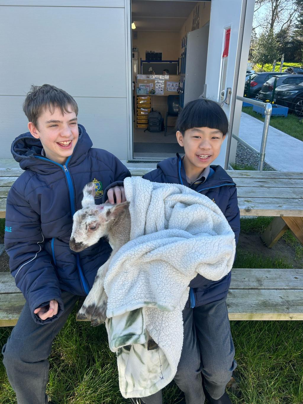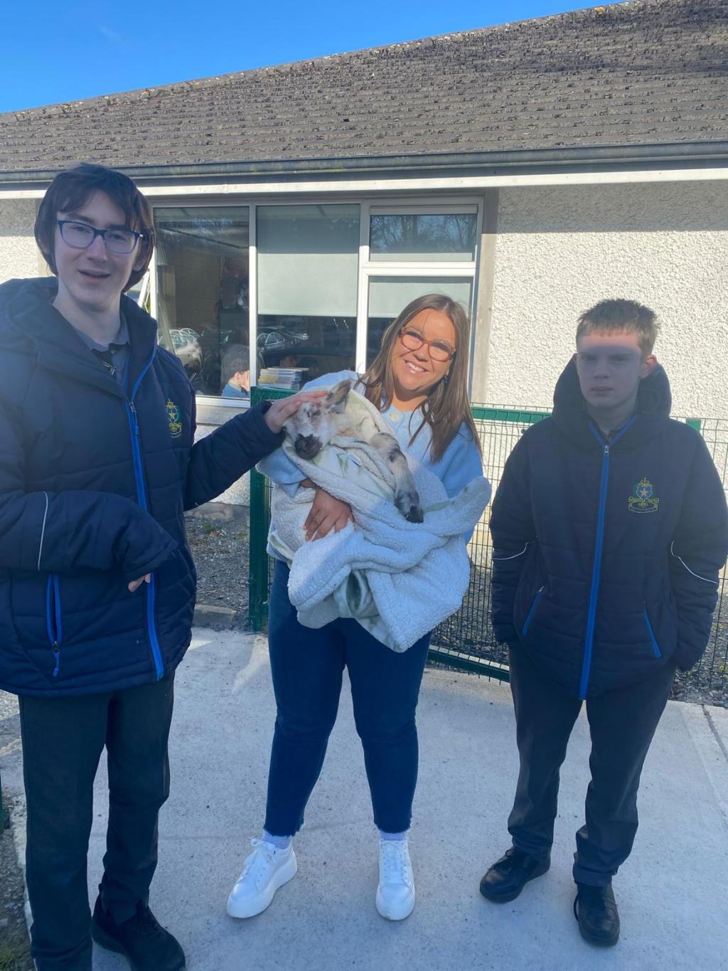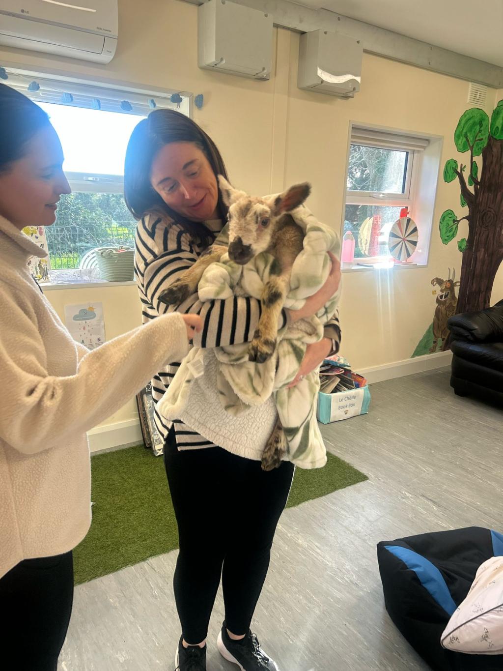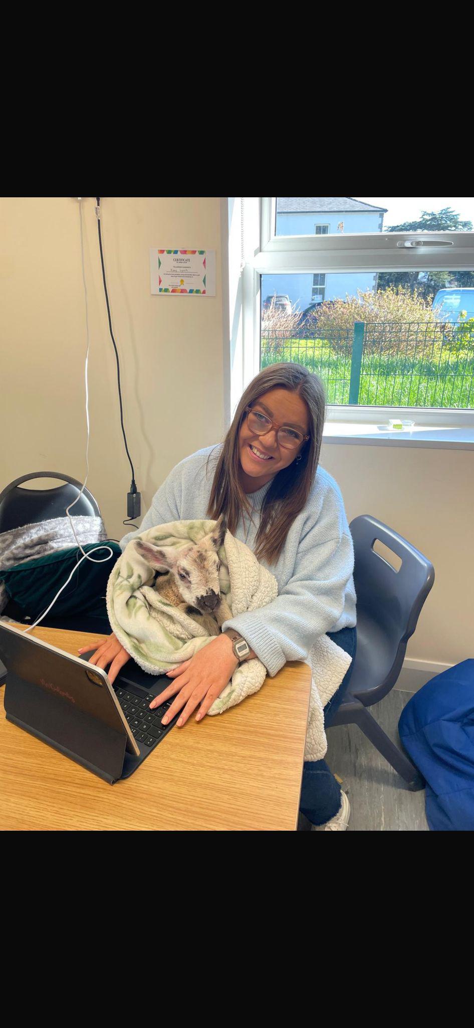 Thank you to Mr Cumiskey for trusting the students and staff in Le Cheile to look after his pet lamb for the day! The little lamb was the centre of attention in school today ️