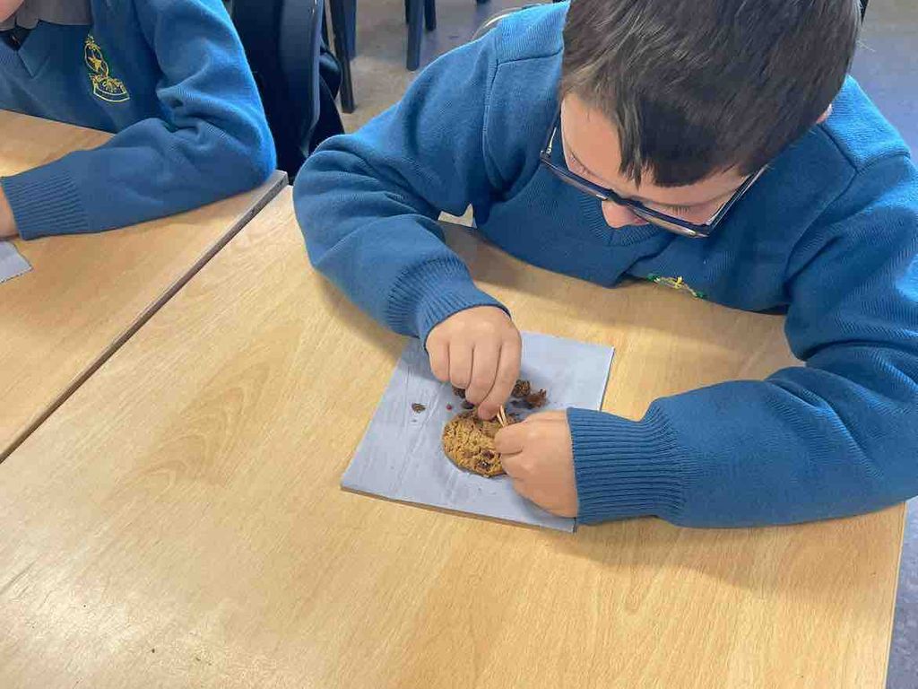 Ms Delaney’s 1st year history students were busy excavating in class this week and putting their archaeology skills to work removing chocolate chips from cookies using only cocktail sticks.