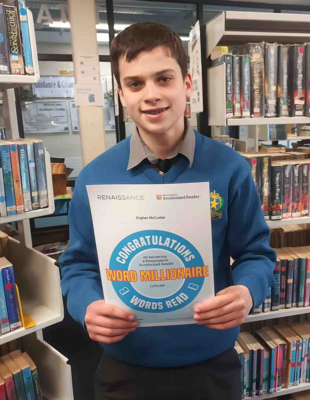 Congratulations to Eoghan McCusker, 2nd year on becoming an Accelerated Reader Word Millionaire.