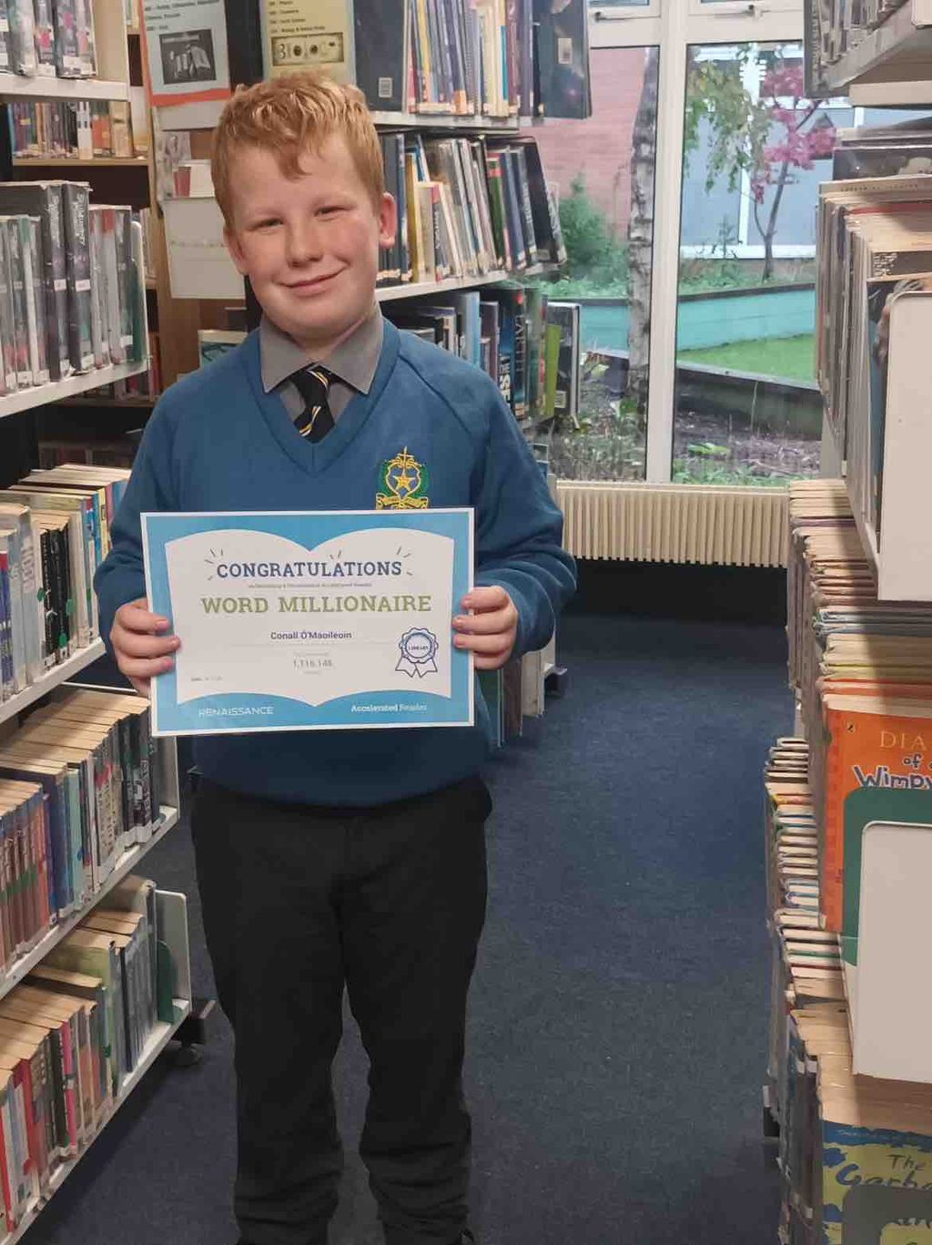 Congratulations to Conall Ó’Maoileoin, 1st year on receiving his Word Millionaire Certificate.
